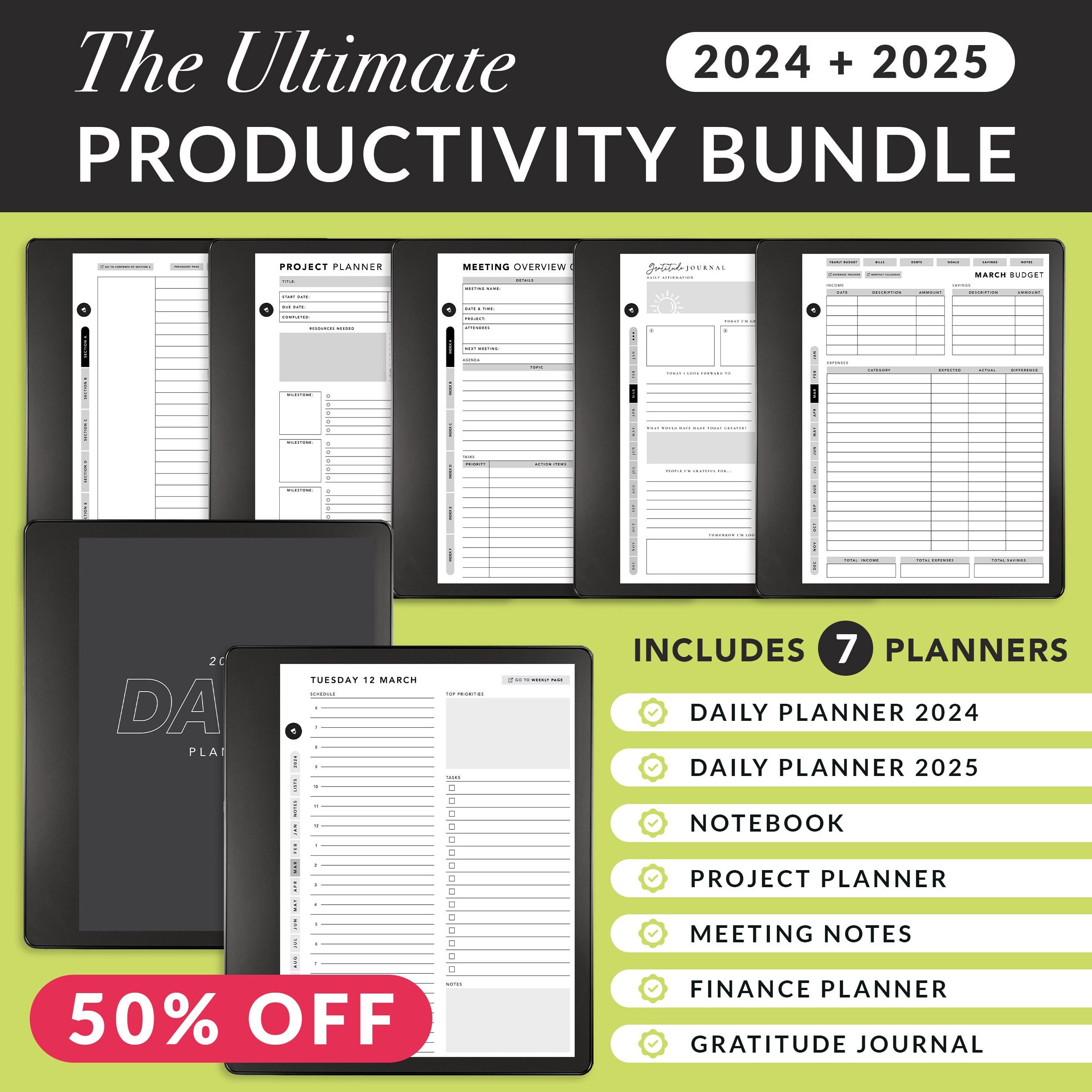 Kindle Scribe Templates, 2024, 2025, Productivity Bundle, Daily