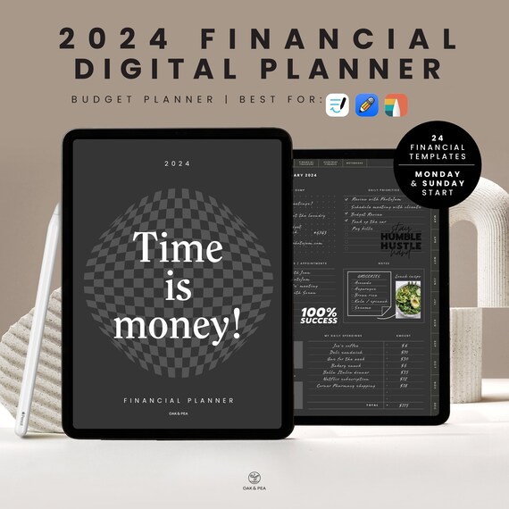 2024 Digital Black Financial Planner Dark Mode Budget Planner